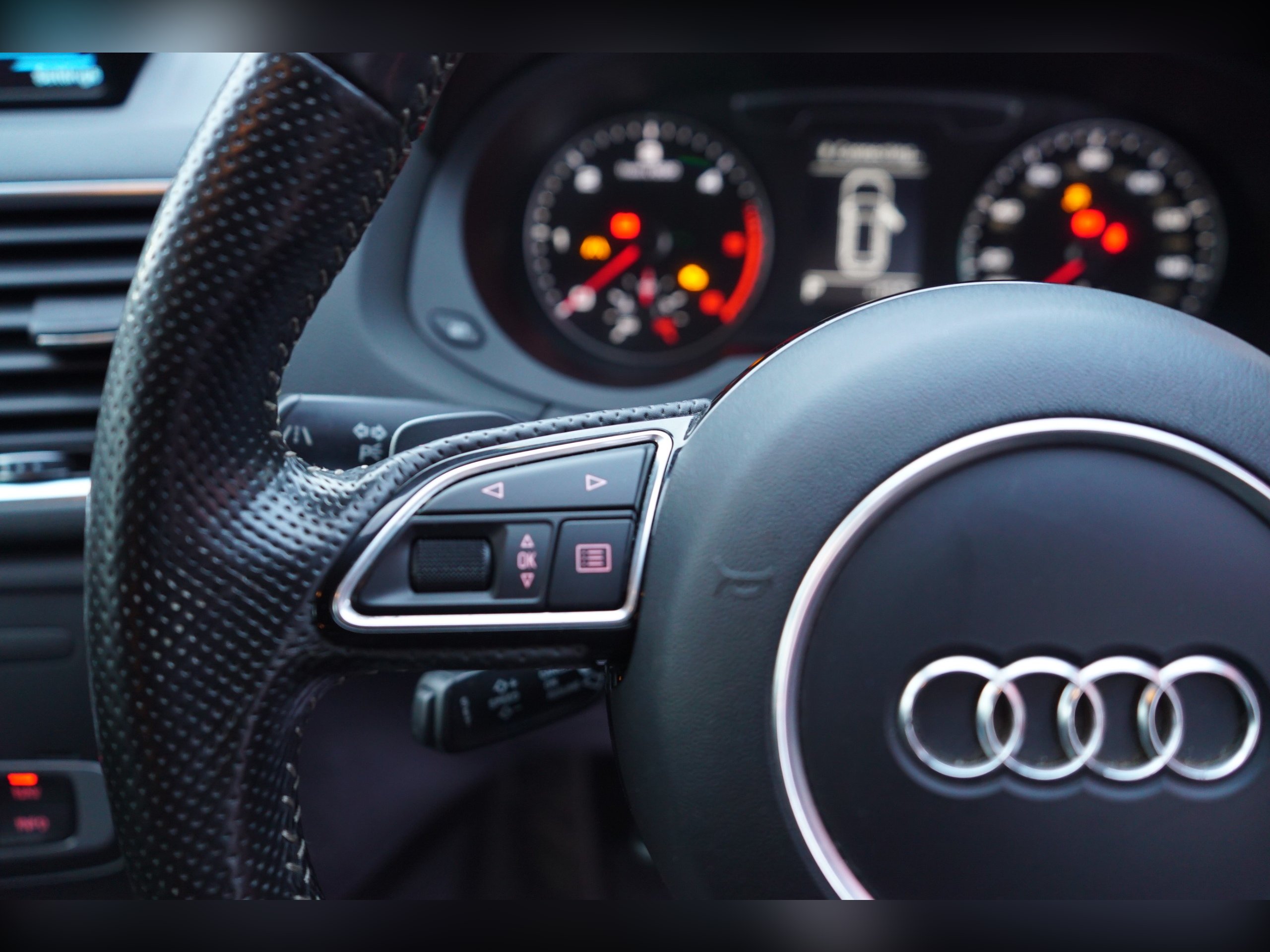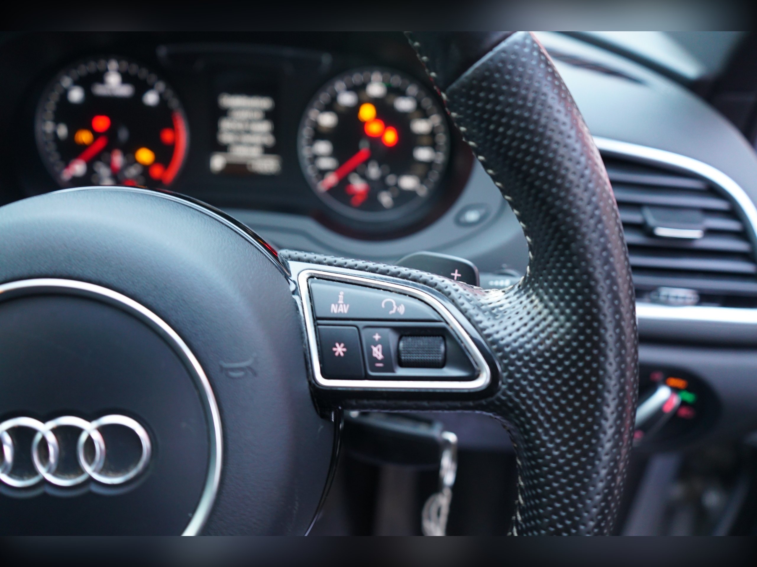 - Steering Wheel - 3-Spoke Leather-MultiFunction-Shift Paddles-Q-Design