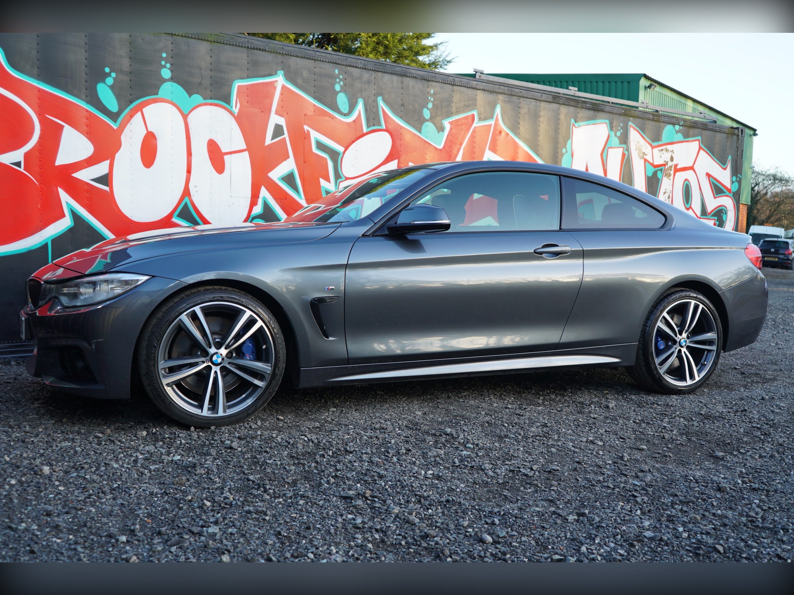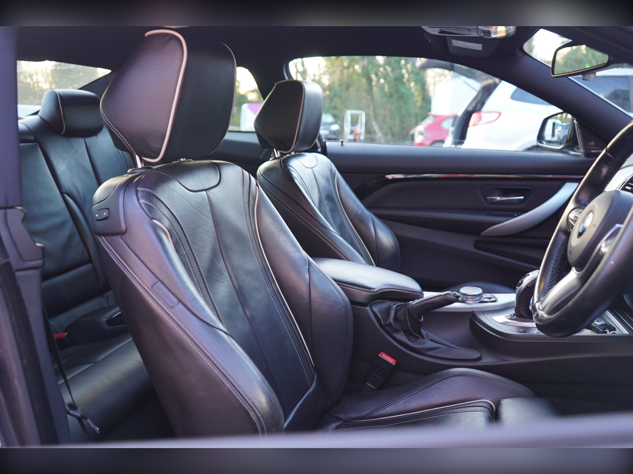 Brookfield Autos proudly presents this stunning 2015 (65 Reg) BMW 4 Series 435i M Sport boasts a full service history, offering peace of mind alongside its impressive performance. This Euro 6 compliant model features a powerful 3.0L petrol engine and comes with a 6 month warranty for added security. Inside, you'll find luxurious Individual Extended Merino Leather in black, complemented by a heated steering wheel for those colder mornings. Practicality is also key, with a reversing assist camera making parking easier and a large boot space ready for your luggage. The M Sport trim enhances the already dynamic styling, and the 19 inch M Double Spoke alloy wheels add a sporty finish. The High Beam Assistant provides improved visibility at night, while the low insurance group rating indicates this model is more economical to run than many others in its class. These carefully selected features and the comprehensive service history demonstrate the exceptional value and quality of this BMW 4 Series. Features 7K worth of optional extras making it a far less common example to own. -
