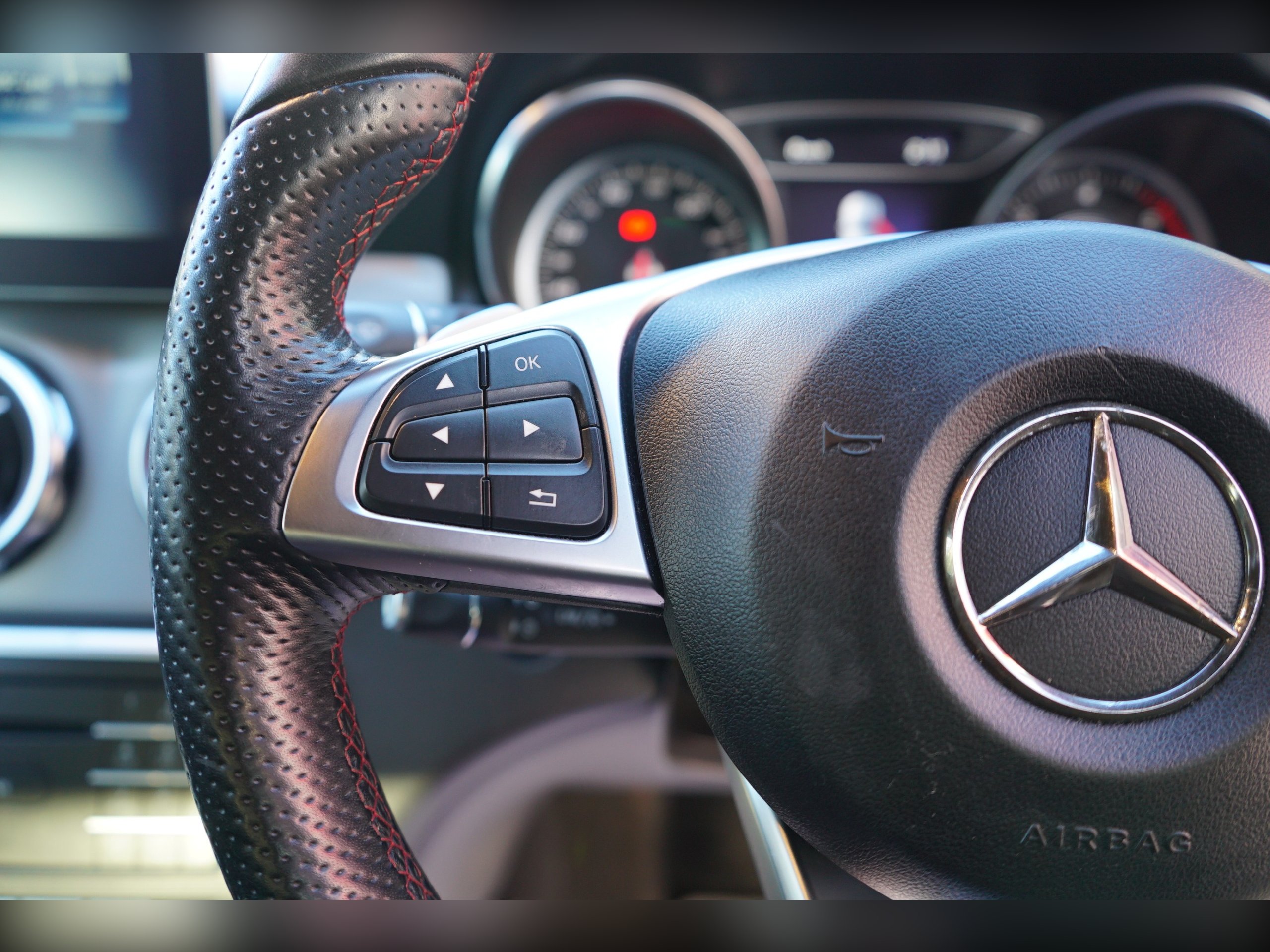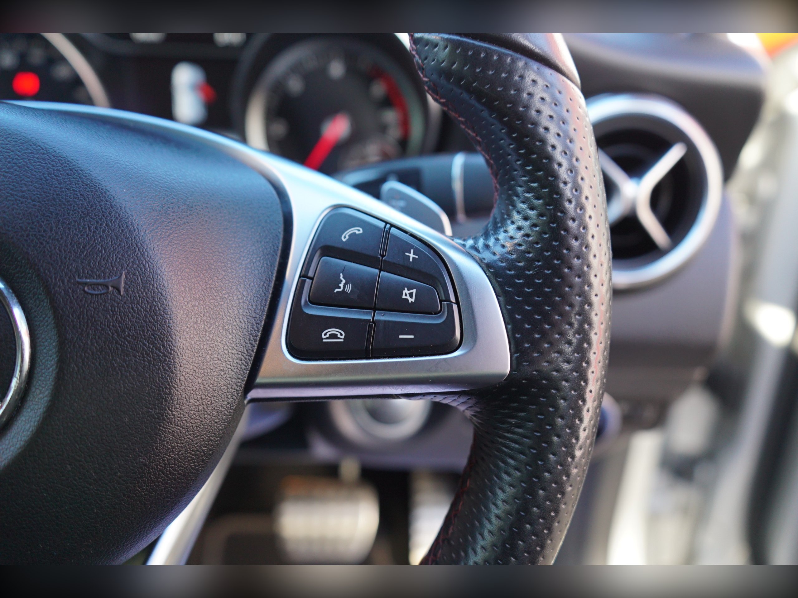 - steering wheel - 3-spoke - 12 button multi-function - trimmed in nappa leather with perforated leather in grip area - flattened bottom section