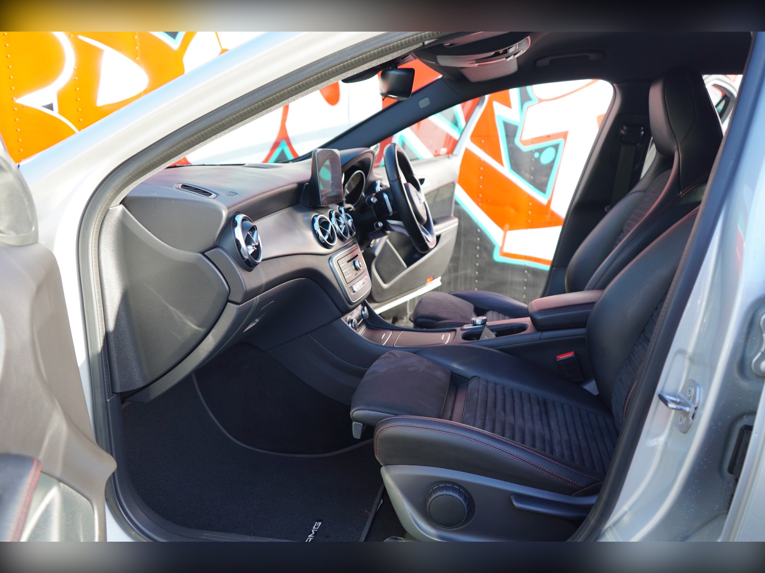 - floor mats - red stitched edging - amg lettering